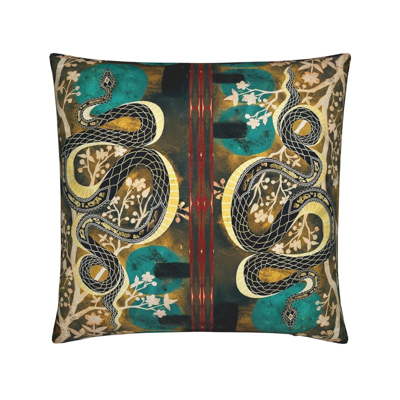 The Serpent pillow captures nature’s quiet power in soft form. Deep, moody tones and hand-illustrated details make this design an artful accent — a perfect balance of wild beauty and refined comfort.