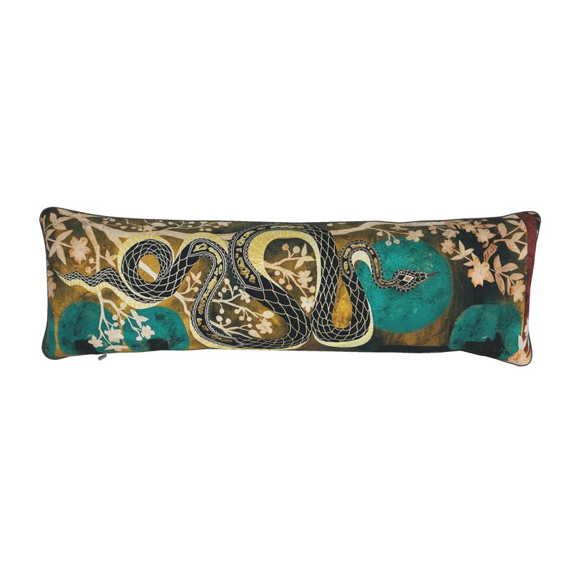 Soft meets striking. The Serpent pillow by J Barna Studio brings bold elegance to any space — hand-drawn serpents woven through moody botanicals for a look that’s equal parts art and atmosphere.